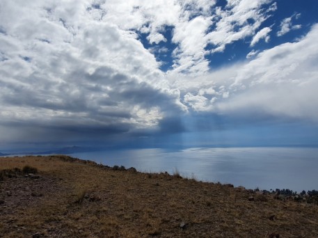 Blick von Amantani über den Lake Titicaca